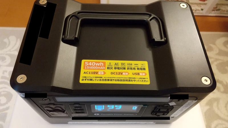 我が家が2021年に購入したポータブル電源は540Whクラスの品であります。