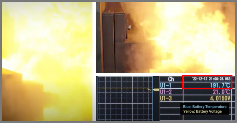 私が見た「YouTube動画」では数名の方がダブソン公式にアップされていたリチウムイオン電池に関する実験模様の動画を引用され危険度の違いを紹介されていました。