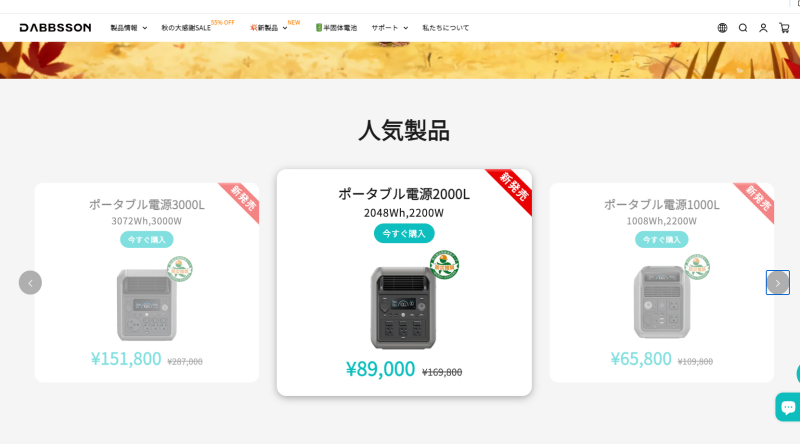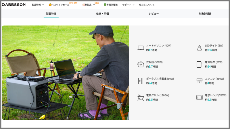 キャンプ好きな方やポータブル電源好きの方が紹介していた動画が参考となったのですが、2025年時点で「DABBSSON(ダブソン)」の半個体リン酸鉄リチウムイオン電池を使用したポータブル電源が絶賛されていたのです。
