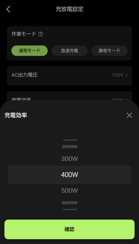 家庭用コンセントからの入力電力量を調整する事も可能。最大で1500Wまで行けます。