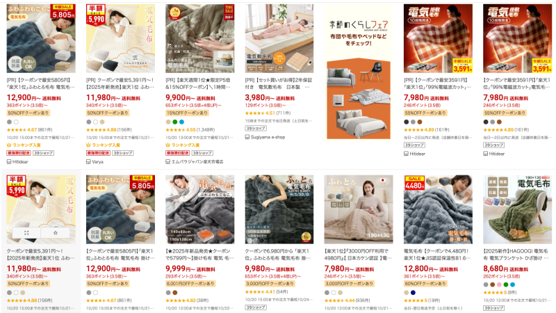 早速、楽天市場にて暖かそうな電気毛布を購入。