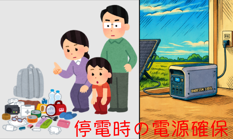 我が家では「災害発生時の停電を想定」で考え、停電時にも「普段と変わらない行動が取れる」を目的に考えています。
