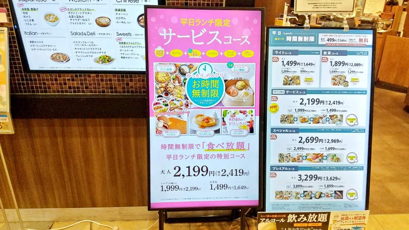 「サービスコース」も時間無制限の対象となっており、この日の食事は約100分間の滞在。