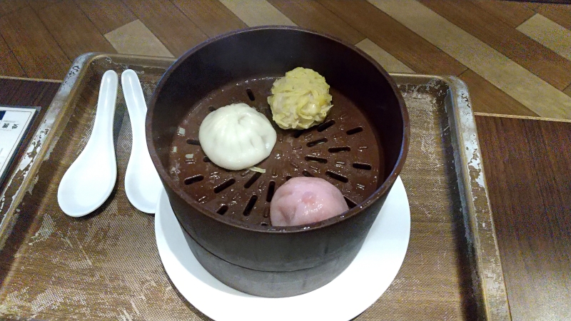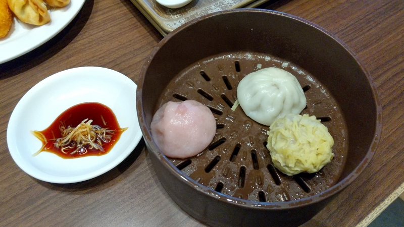 2人がテーブル席に案内してもらってから早めにオーダーメニューを注文した事で、早速「点心3種」が届きました。