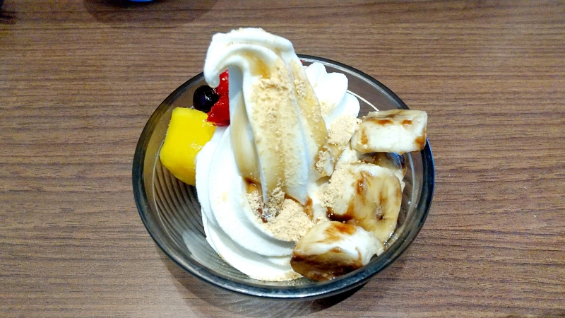 妻はソフトクリーム盛り付けを楽しんでいる様子。 こちらも2人で味わいます。