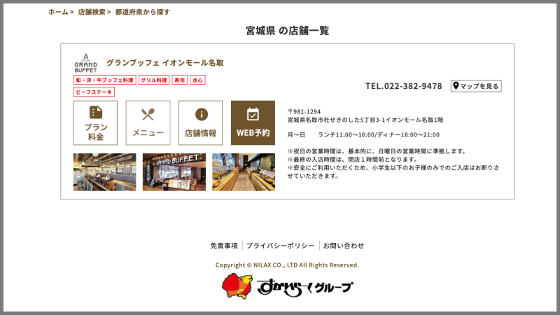 ニラックスのHPへアクセスして宮城県内の店舗を検索してみると・・・