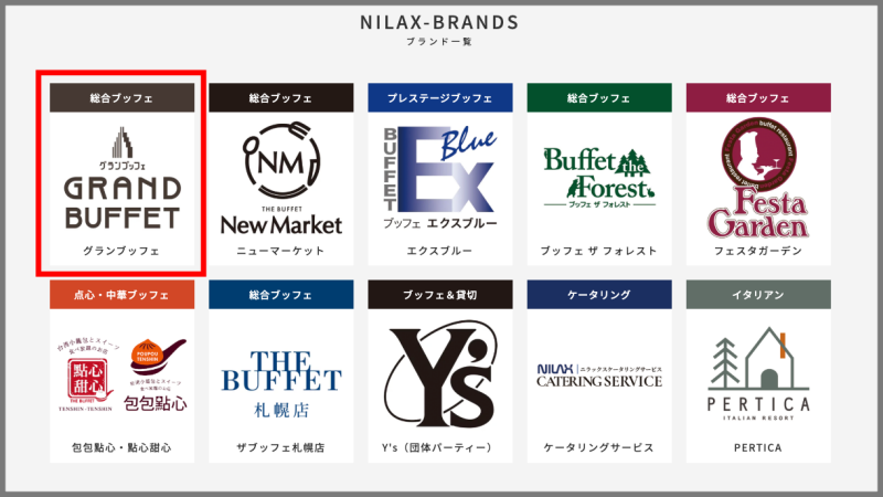 ニラックスとしては総合ブッフェのブランドが複数あり、その中の「グランブッフェ」であります。
