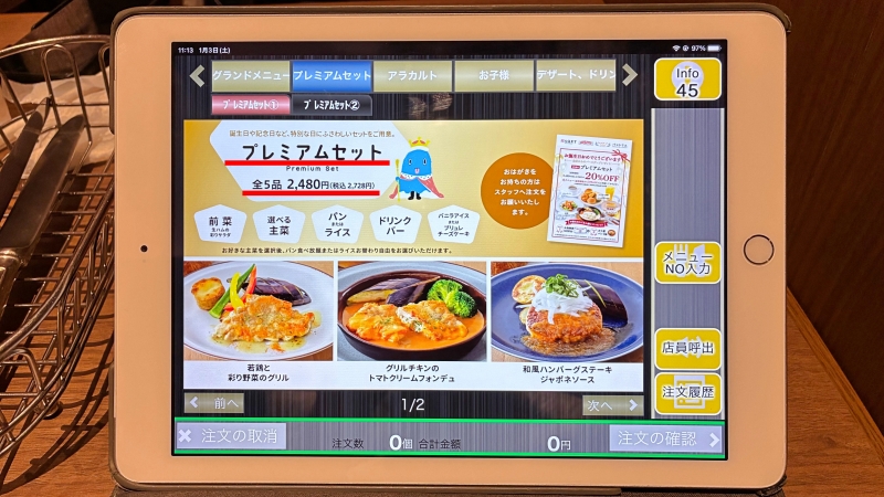 早速、テーブル上のタブレットを使ってお料理の注文。