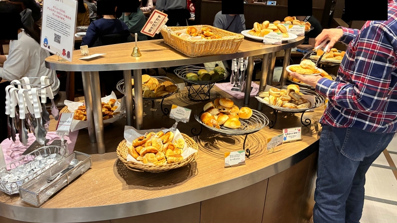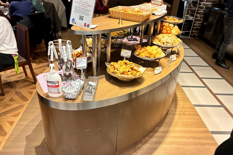 ビュッフェコーナーへパンを持ってきたスタッフさんがベルを鳴らすと度々人が集まってくるのが印象的でもあります。
