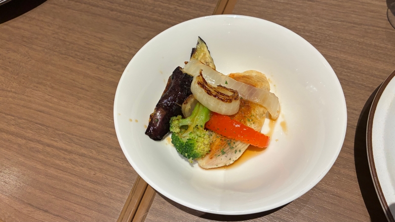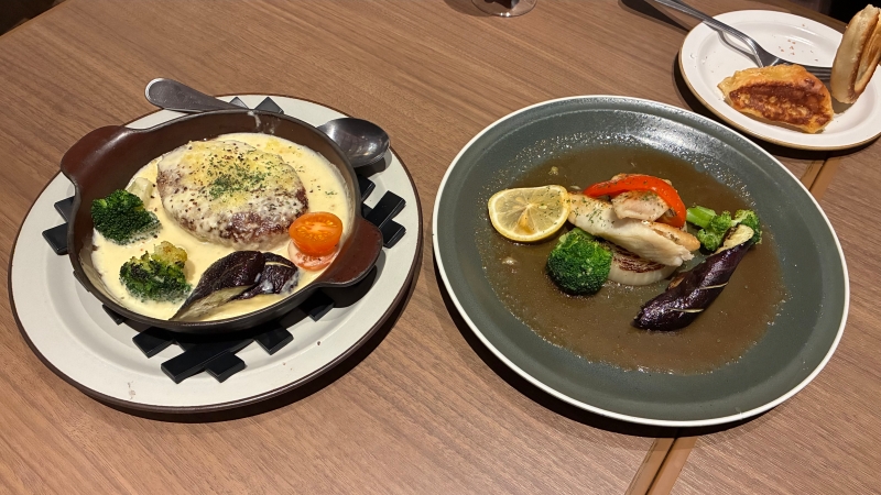メイン料理も到着!「魚のグリル」に「和風ハンバーグステーキ」