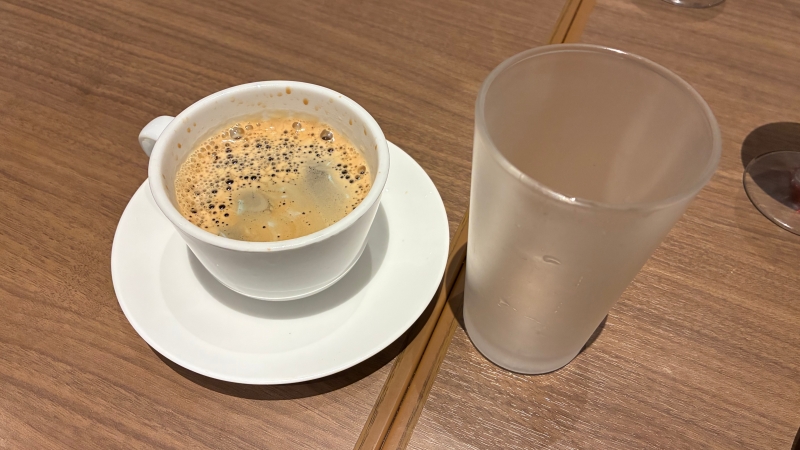 ドリンクバーも付いているプレミアムセット、ワインも楽しんでいた事からホットコーヒーに炭酸水の1杯ずつでも満足です。
