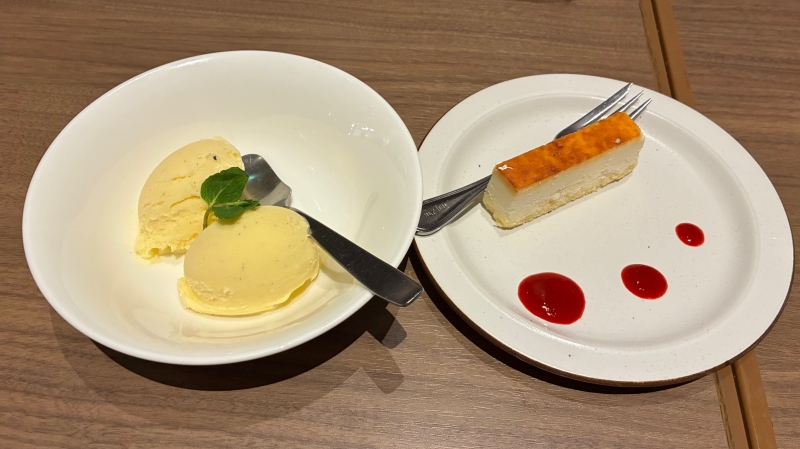 妻が選んでくれたデザートは「バニラアイス」と「チーズケーキ」。
