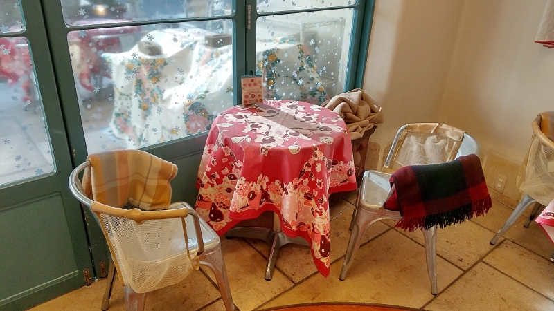 100m程歩いていくと左手方向に突然鮮やかな色のテーブルが現れて来ました!