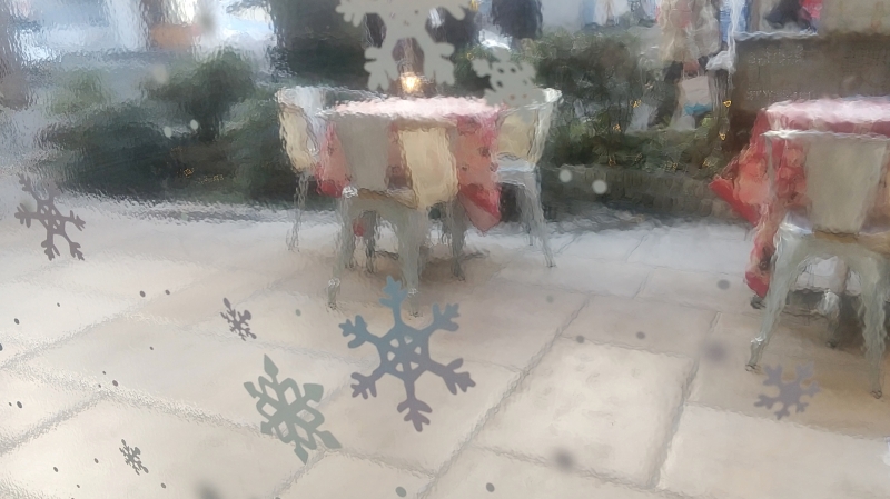 窓ガラスにはこの様なフィルムが貼られていて、外から店内の様子や直接お客さんの顔が見えない様に配慮されています。