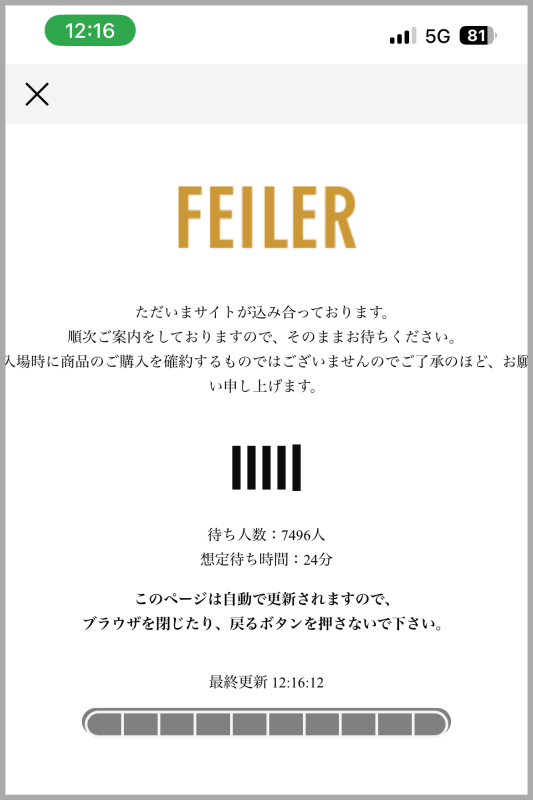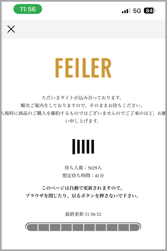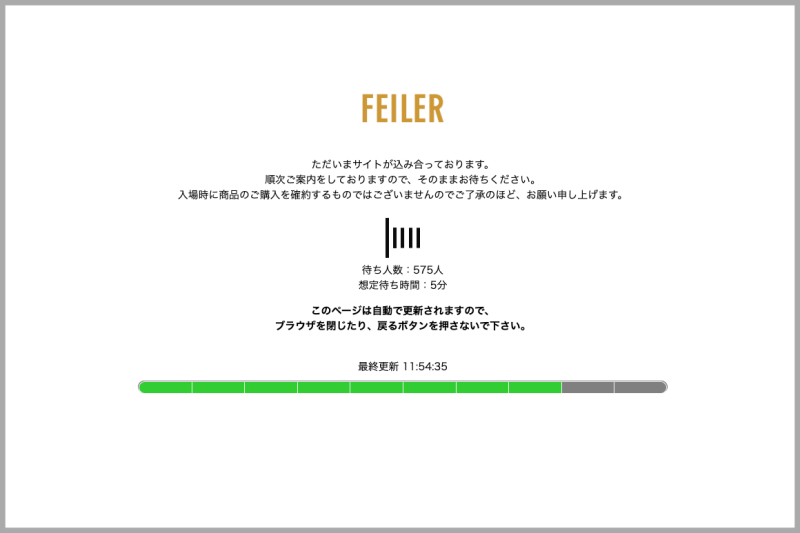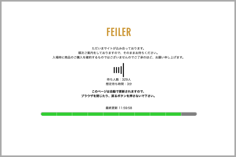 20分前にHPを覗いた時は自然と入れましたが、15分前に再度入ってみると下記のような表示が開始です。