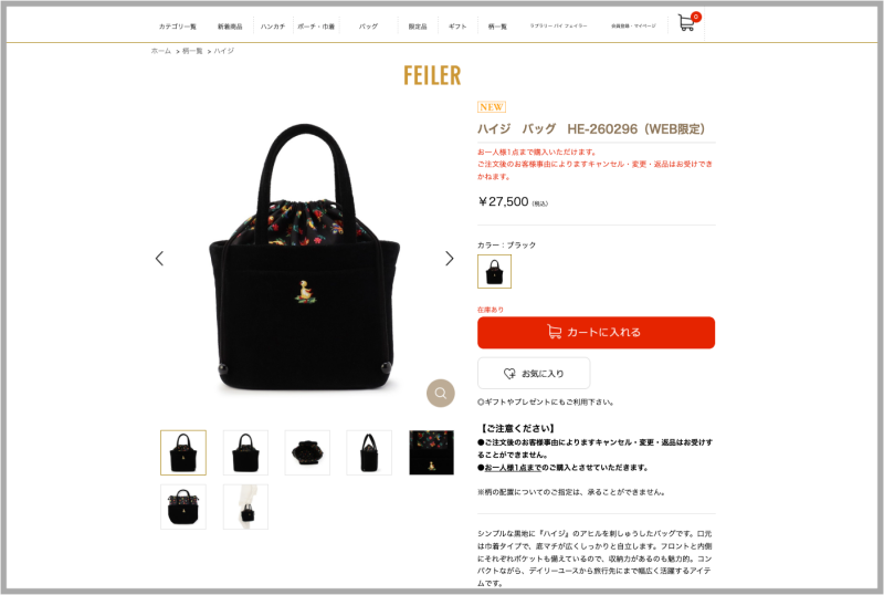 私が先にフェイラーの品を手にし、その後になって妻も自分自身のフェイラーバッグを購入した流れとなりました。福袋商品としてハンカチとセットになっていた商品です。