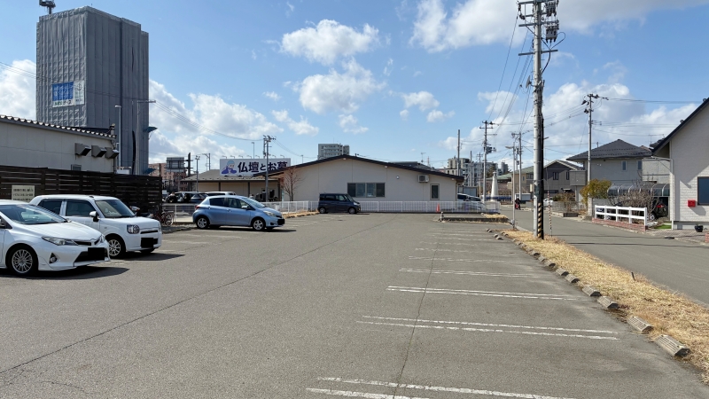 既に駐車場には数台の車がありました。 奥側の駐車スペースは多くが軽自動車サイズとなっています。