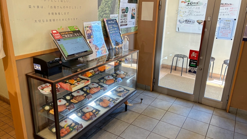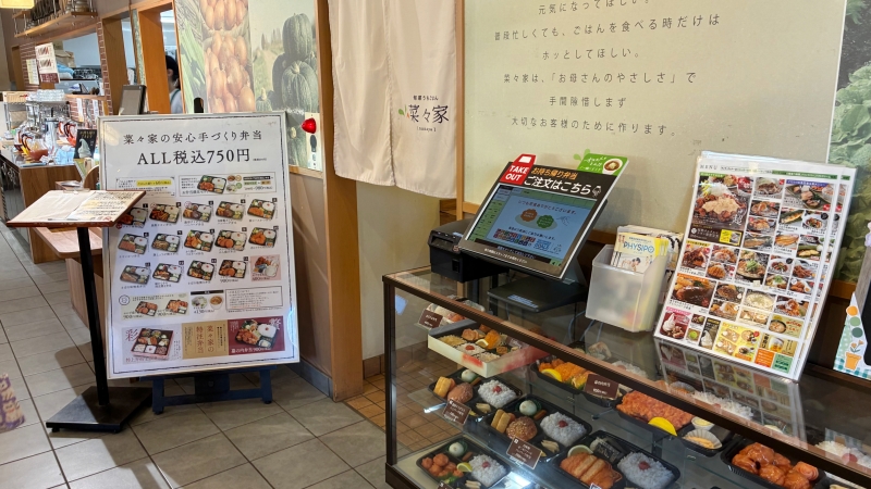 扉を開けるとお弁当のサンプルが目に入って来ました。 ALL750円とは分かりやすいですね。