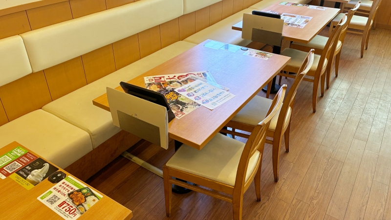 スタッフさんより「お好きな席へどうぞ!」との言葉を貰え壁側のテーブル席を選択。
