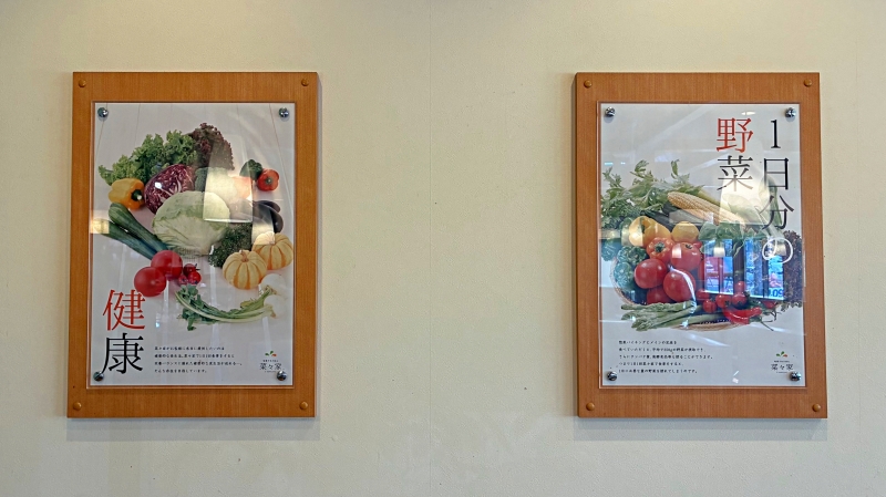壁に飾られた額内の「健康」「野菜」との文字、現在の私達夫婦にとってとても重要なワードとなっています。