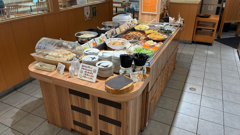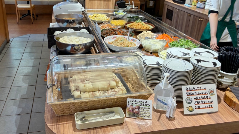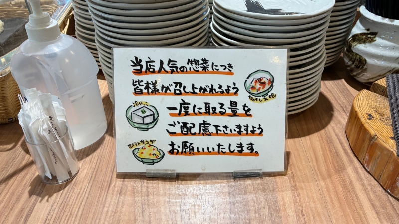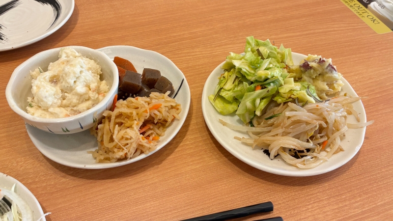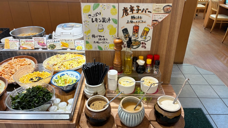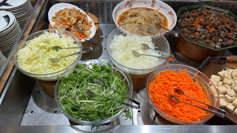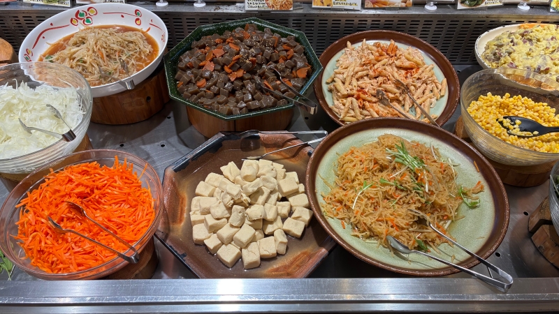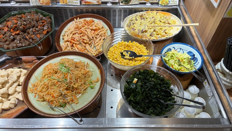 タブレットにて注文完了後は直ぐにビュッフェコーナーにてお惣菜を選ぶ事が出来るのも嬉しですね。お腹が空腹ならば直ぐに召し上がることも可能です。