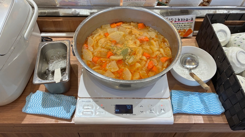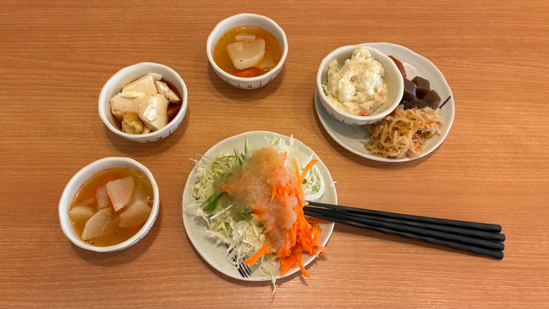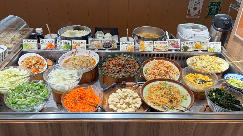 食事メニューを一品注文する事で利用可能となる「お惣菜ビュッフェコーナー」