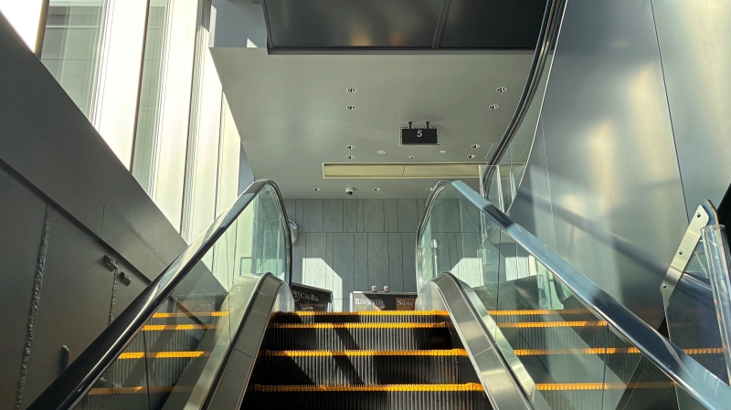 線路側のエスカレーターで5階へと上がっていきます。