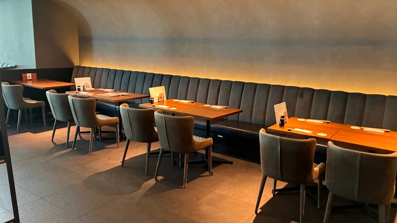 直ぐに男性スタッフさんのお出迎えを貰い、そのままスタッフさんの案内によりこちらのテーブル席へと移動。